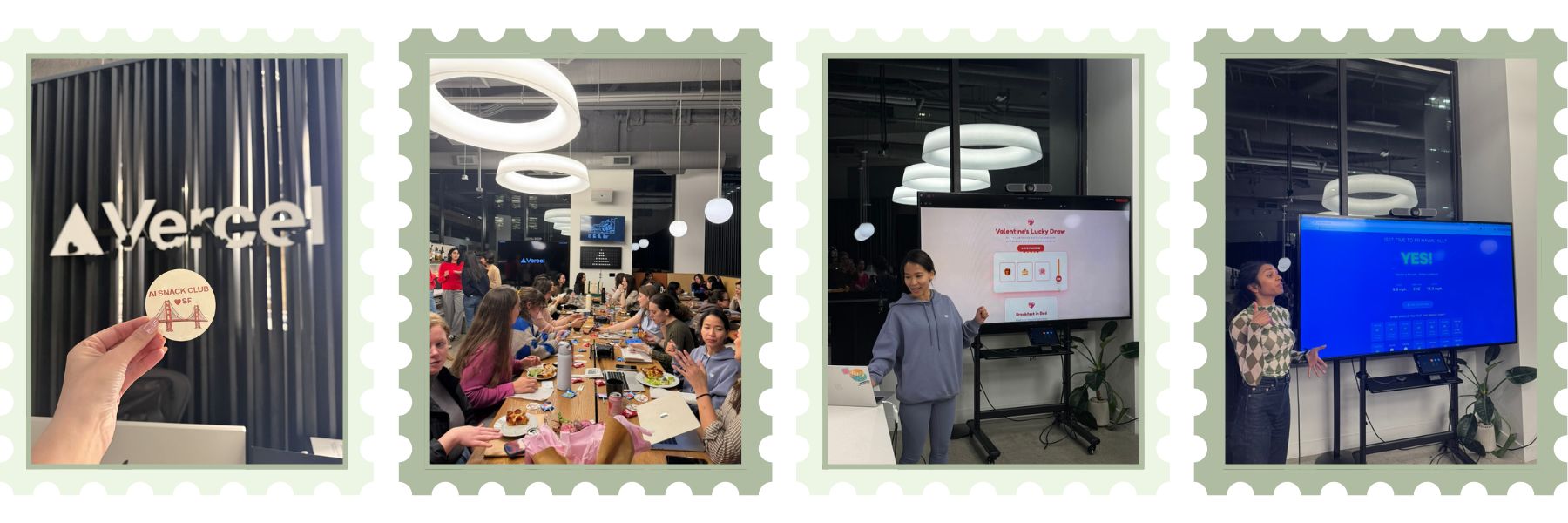 Last Tuesday was AI Snack Club's first-ever in-person event and I'm still buzzing about it!! We partnered with v0 by Vercel for a Galentine's Vibe Coding Night at their San Francisco office, and it was everything I hoped it would be and more.